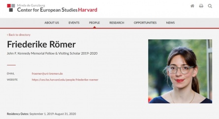 Römer hat das John F. Kennedy Memorial Fellowship erhalten und forscht bis Ende August 2020 in Cambridge/Massachusetts.